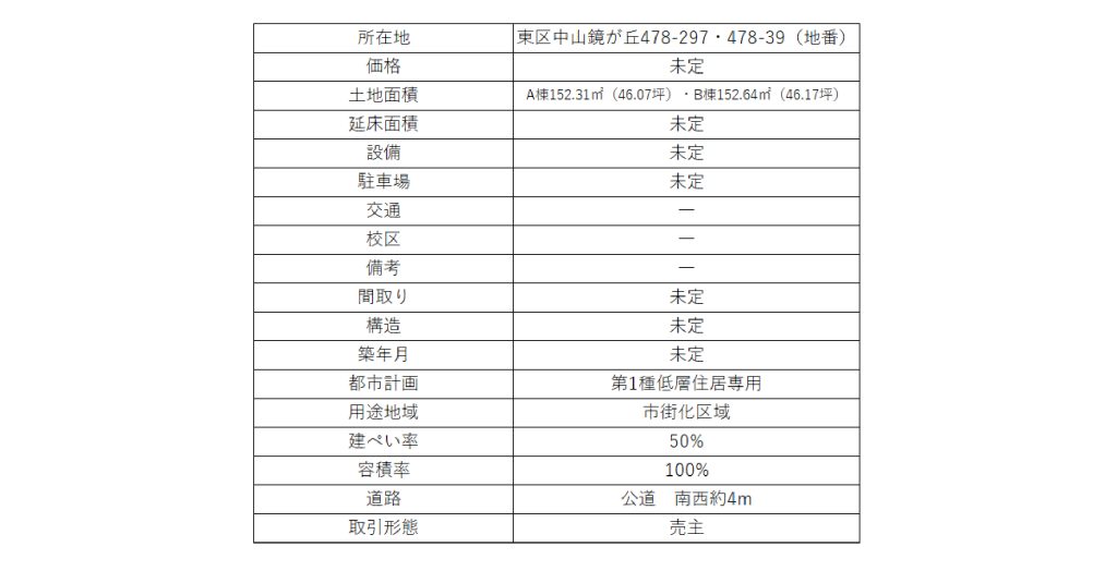 近日公開 東区中山鏡が丘 A棟・B棟